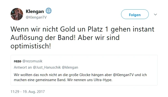 Gründung der Band Ultra-Hype. Twitter Post vom 19.08.2017 [1]