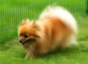 Sansa, la chienne chihuahua, entrain de courir dans l'herbe.