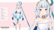 Her character designer is Amashiro Natsuki[29], and her modeler is Shin Uimishi.[30] Her chibi model was made by Walfie[31] and modelled by 入江燈. Gura's illustrator became famous overnight thanks to her character design of Gura, and went on to illustrate Luto Araka, Kana Kamiko, Naname Gokigen, Akami Karubi, Kona Draki and Detarame-chan.