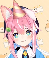 She has been streaming on Twitch since December 2, 2019, but didn't make her 2D Vtuber debut on YouTube til October 7, 2020. She introduced herself as a pink retreiver in her debut video, who was also over a century old. The combination of her white strands of hair and age of 1 dog century caused some fans to tease her, calling her old and/or a boomer. Her next videos were shitposts[1][2][3] from her art streams,[4][5] singing streams[6] and ASMR.