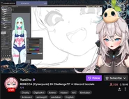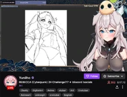 Known for her art streams, she would draw her fellow VTubers such as Merryweather Comics,[7] Haruka Karibu,[8] Kiara Takanashi[9] and DyaRikku.[10] She would also play games like Among Us[11] and Fall Guys.[12] She would also react to funny videos.[13]